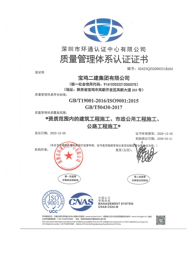 質(zhì)量管理體系證書(shū)