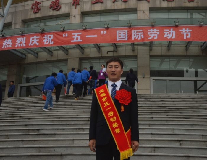 4月30日,寶雞市勞動者之歌暨慶祝“五一”國際勞動節(jié)大會勝利召開,公司劉延強同志被授予“寶雞市五一勞動獎?wù)隆惫鈽s稱號,公司在總部辦公樓前舉行了簡樸隆重的歡迎儀式。公司副董事長、總經(jīng)理胥立,黨委書記景旭東,工會主席王建成等出席儀式,總部全體、寶雞文化藝術(shù)中心項目部管理人員參加。