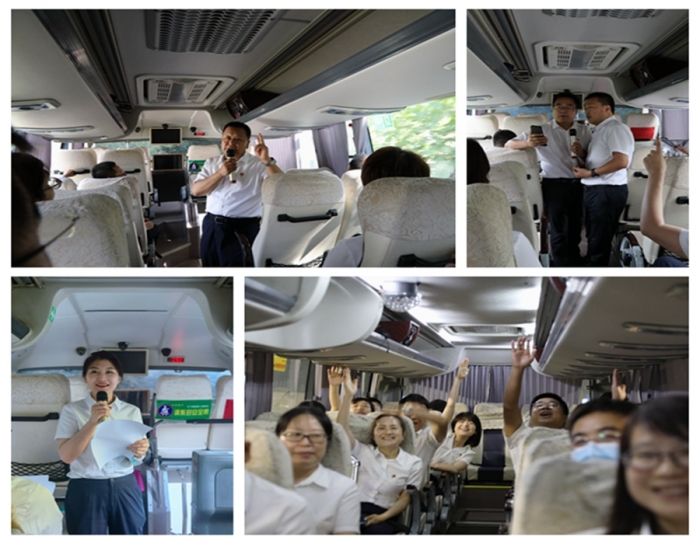 在前往鳳縣革命紀(jì)念館的路途中,嘹亮的紅色歌聲回蕩在群山之間,車廂內(nèi)大家熱情高漲,通過黨史知識問答、紅色歌曲傳唱、紅色詩詞朗誦等互動活動,一同重溫黨的歷史,表達對黨的熱愛和祝福。