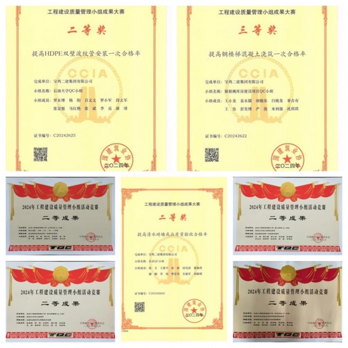 近日,從中國建筑業(yè)協(xié)會、中國施工企業(yè)管理協(xié)會、陜西省質量協(xié)會、陜西省建筑業(yè)協(xié)會傳來喜訊,集團公司7項成果獲得國家級質量管理小組優(yōu)秀成果稱號,其中二等獎6項、三等獎1項。